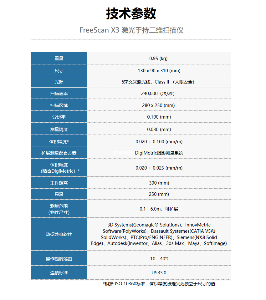 FreeScan X3激光手持三維掃描儀,設(shè)備重量僅有0.95kg,滿足當(dāng)下用戶對于超便捷掃描儀的需求;全新線激光陣列3D掃描技術(shù),掃描速率240,000 次/秒,掃描精度高達(dá)0.030mm,兼具快速與精準(zhǔn)的雙重優(yōu)勢。
